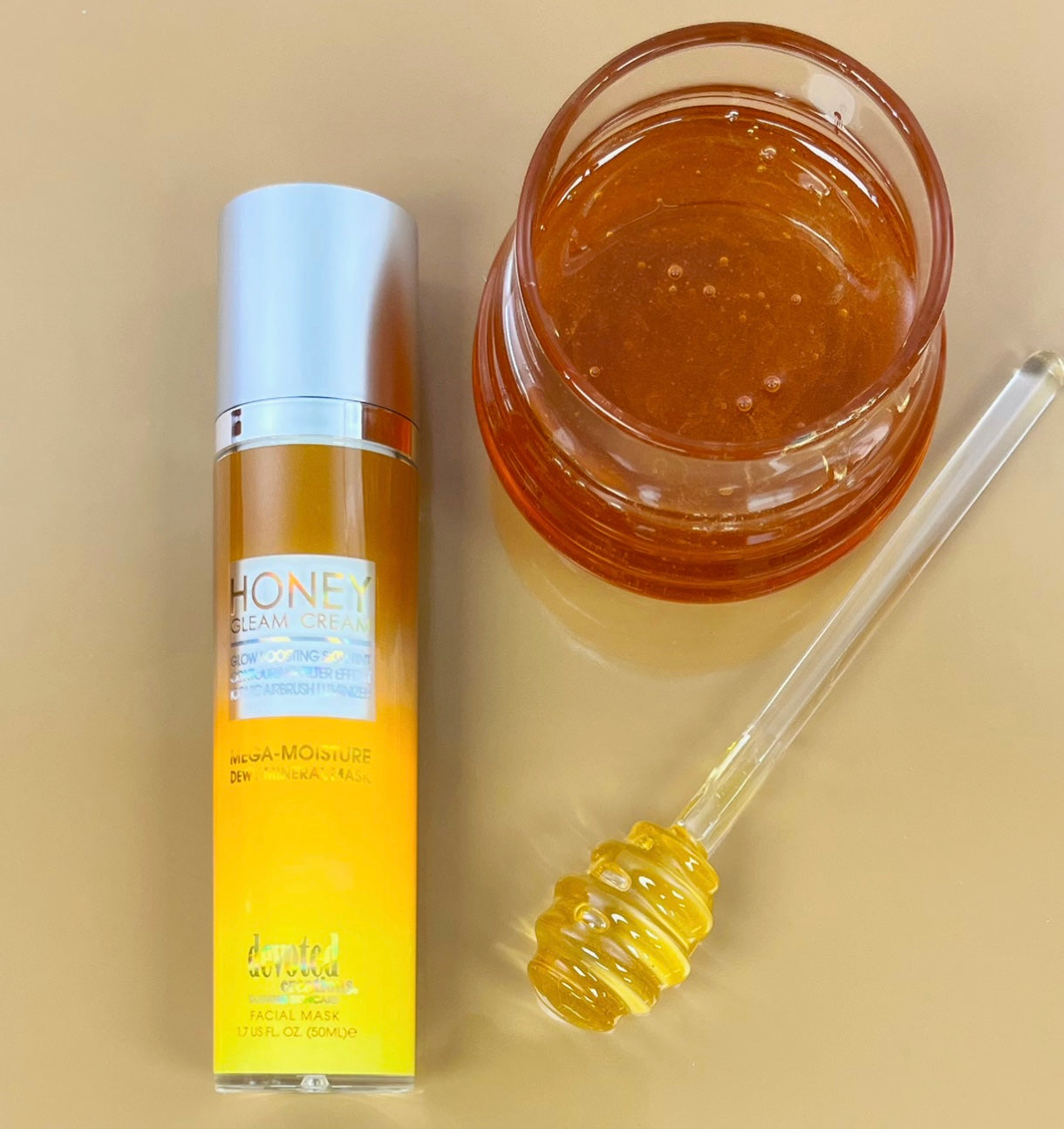 “Honey Gleam Cream™ is Devoted Creations youth boosting magic skin enhancing glowing skin tint! This revolutionary mega moisture mineral tanning mask works to perfect the skin’s surface, plump and hydrate with the use of Hyalufix™ and Vegan Collagen. Added Honey and Green Tea extracts work overtime to fight the appearance of fine lines and wrinkles, while also helping to block the skin from absorbing environmental stress and damage. Porcelain Flower and Electric Daisy work together to contour, perfect, and leave the skin with a crystal clear filtered appearance. This imperfection blurring and pore tightening formula combines Glucohami™ and GlowPlex™ to promote a luminous, dewy appearance to the skin while also tightening and toning for a lifted, poreless, superstar illuminated finish. Added tan enhancers help to prepare the skin for optimal light absorption, making this product a must have for anyone who lusts airbrush, iconic summer skin results anytime!” Devoted Creations